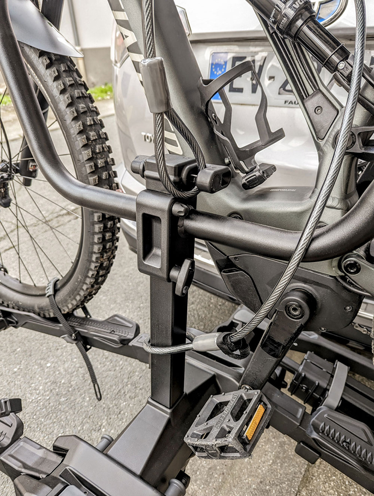 Ein 10 mm starkes, doppelschlaufiges Kabel wird mitgeliefert und kann mit der vorhandenen Verriegelung des Fahrradträgers verwendet werden