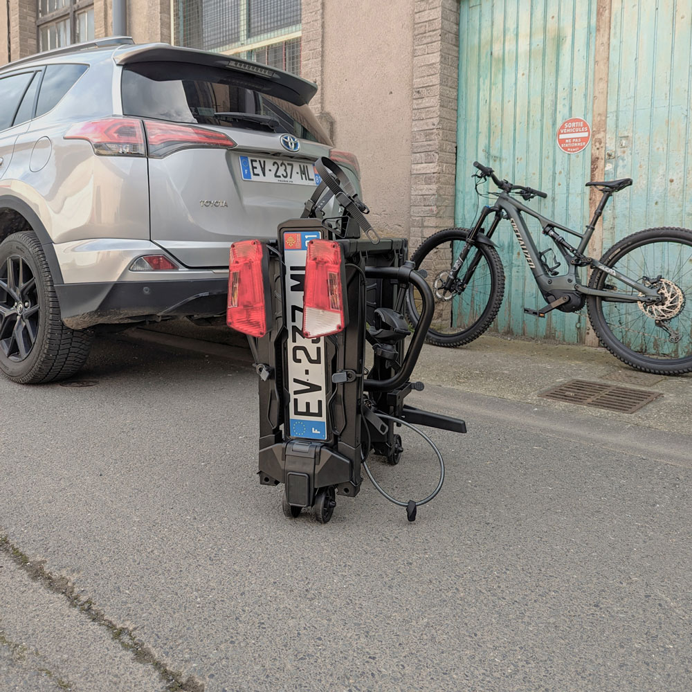 Der SCORPION PRO 2 ist ein vollständig ausgestatteter Fahrradträger, der speziell für größere oder schwerere Fahrräder, darunter auch E-Bikes, entwickelt wurde. Dank seiner Rahmenform lassen sich selbst Tiefeinsteiger-Modelle mühelos montieren. Der Fahrradträger ist mit nahezu jedem aktuellen oder zukünftigen Fahrradmodell kompatibel. Trotz seiner robusten Bauweise ist der Träger im zusammengeklappten Zustand dank seines kompakten Formats einfach zu handhaben. Er lässt sich nah an der Anhängerkupplung anbringen, sodass Du Deinen Rücken schonen kannst. Zudem kannst du ihn problemlos rollen und platzsparend verstauen. Der Scorpion hängt selbstständig auf der Kupplung, während du ihn festziehst, verriegelst und ausklappst. Du musst dein Fahrrad nicht einmal anheben.Nutze einfach die integrierte Rampe, um das Fahrrad auf den Träger zu schieben und kannst die Rampe danach wieder am Träger verstauen. Ein integriertes Anti-Wackel-System sorgt für sicheren Halt während der Fahrt. Zudem ist ein Diebstahlschutzkabel im Lieferumfang enthalten, damit Sie sorgenfrei unterwegs sein können. Der Träger lässt sich besonders einfach abklappen, denn der Mechanismus befindet sich direkt oberhalb des Nummernschildes. Die Beleuchtung verfügt über fünf Funktionen, darunter Rückfahrlicht und Nebelschlussleuchte (bei Verwendung eines 13-poligen Steckers).