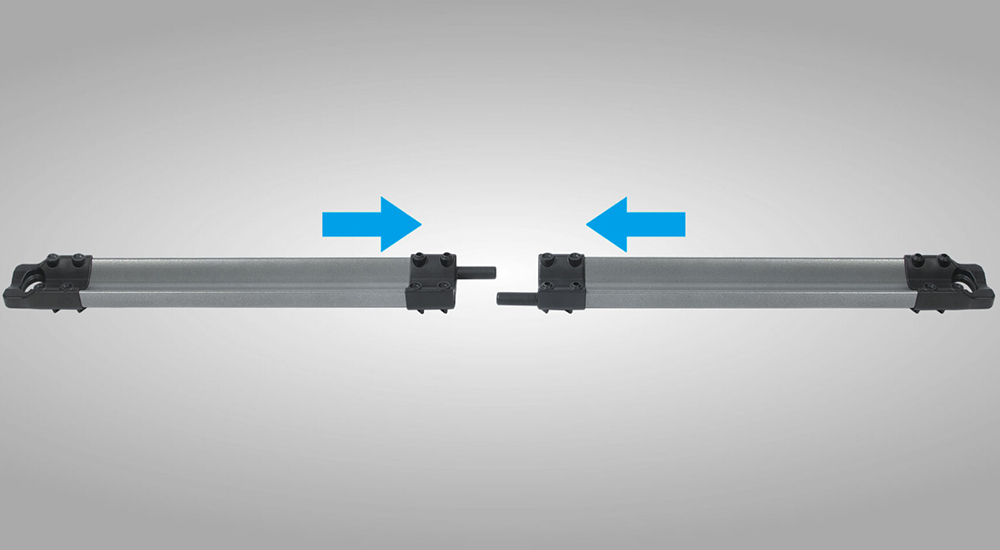 Die Auffahrrampe besteht aus zwei Aluminiumteilen, die werkzeugfrei verbunden werden und einfach am Ende der Radschiene positioniert werden. Anschließend kann die Rampe für den Transport an der Rückseite des Fahrradträgers mit Gummiriemen gesichert werden