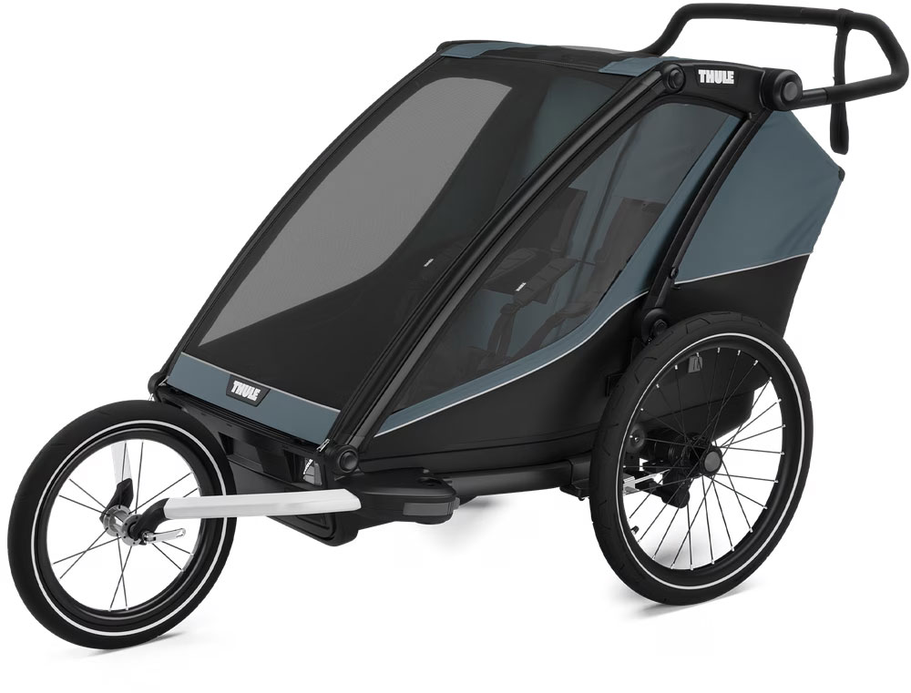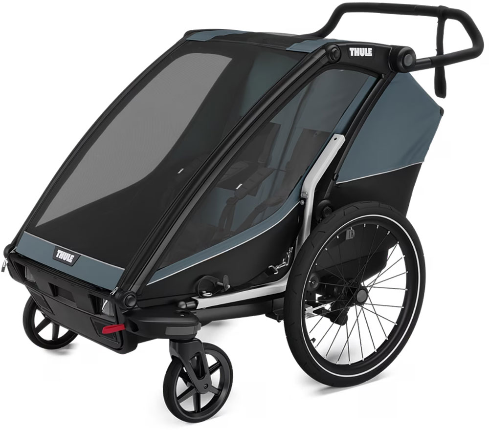 - Der Thule Chariot Cab verfügt über bequeme, gepolsterte Sitze, die leicht zu reinigen und teilweise abnehmbar sind, sowie einen XL-Sitz, mit erhöhter Sitzhöhe, um größere Kinder unterzubringen